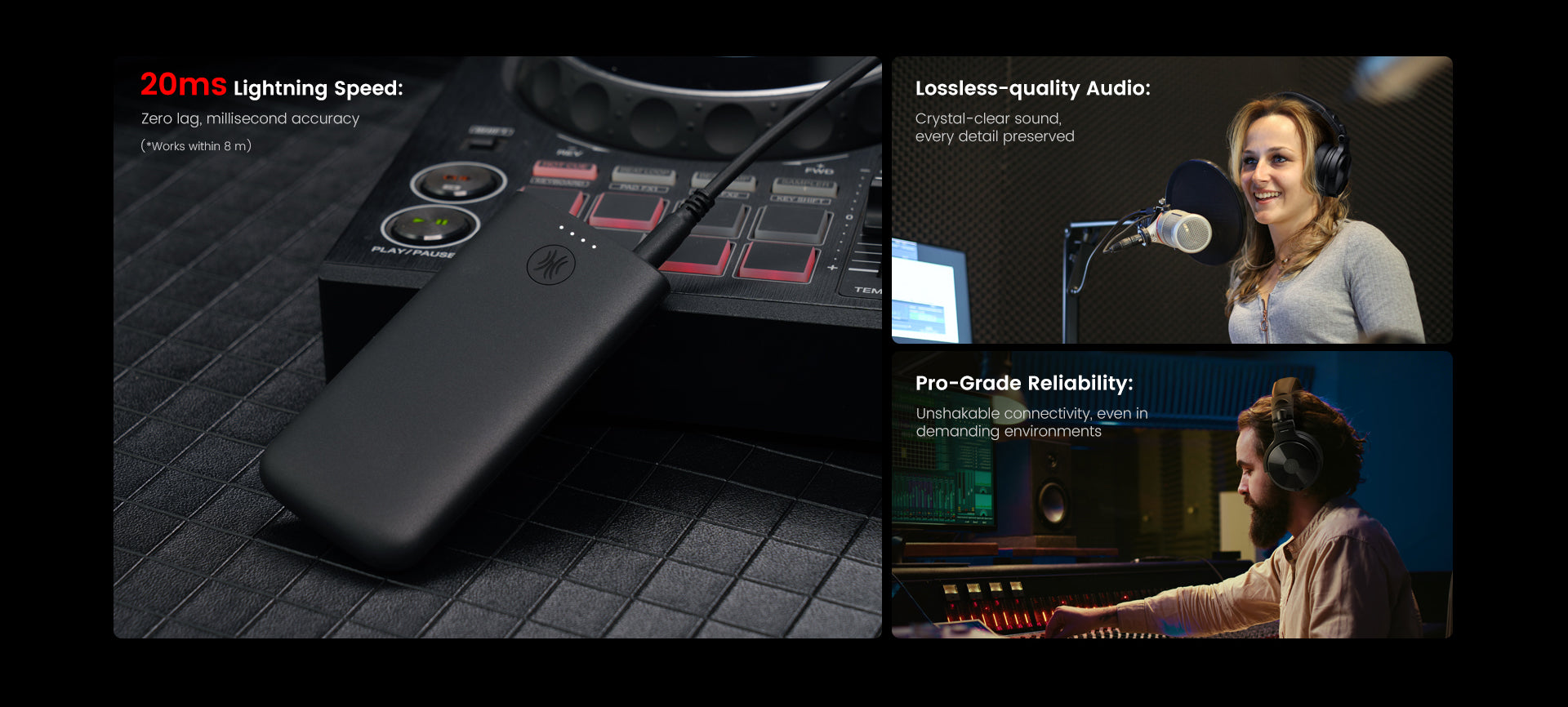 Rapid WILL+ delivers groundbreaking 20ms latency—20x faster than conventional Bluetooth—enabling real-time audio that moves at the speed of creativity. Mix, scratch, cue: zero lag, pure sync, so your hands and ears stay perfectly aligned.