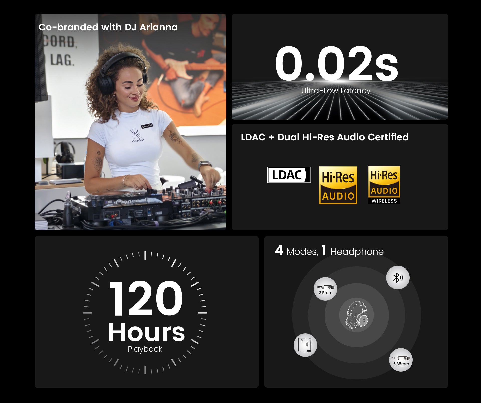 The Studio Max 1 Wireless DJ Headphones—co-branded with Italy’s top DJ Arianna—deliver 0.02s ultra-low latency, a powerful 50mm driver, and versatile connectivity. Whether on stage, in the studio, or in daily life, enjoy boundless creativity and freedom. With up to 120 hours of battery life and fast-charging, your inspiration never stops.