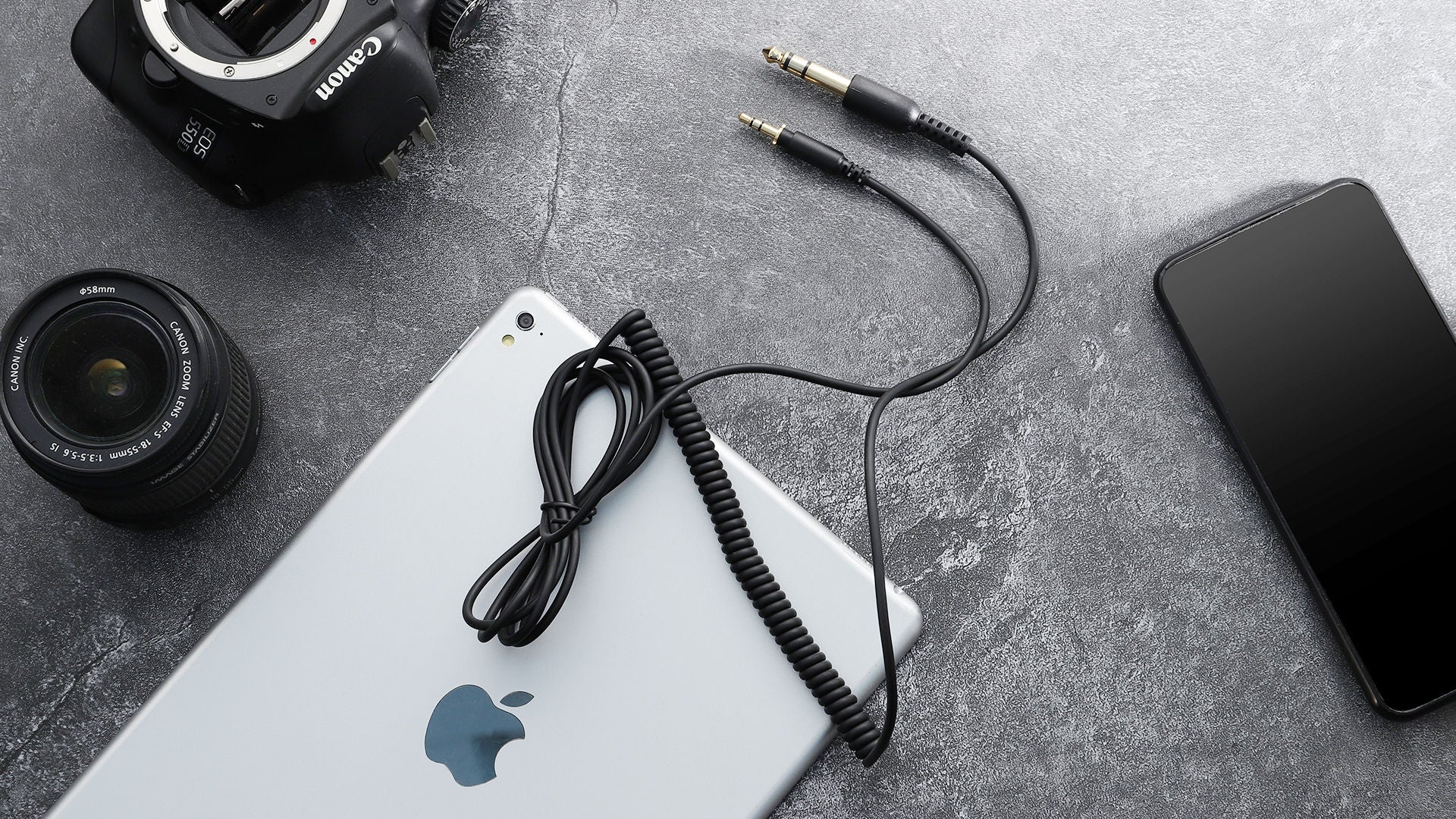OneOdio® Adapter-Free spring Cables (Black) | 3.5mm/6.3mm Plugs for Monitor & Guitar APM & Music Sharing, with jack lock system
